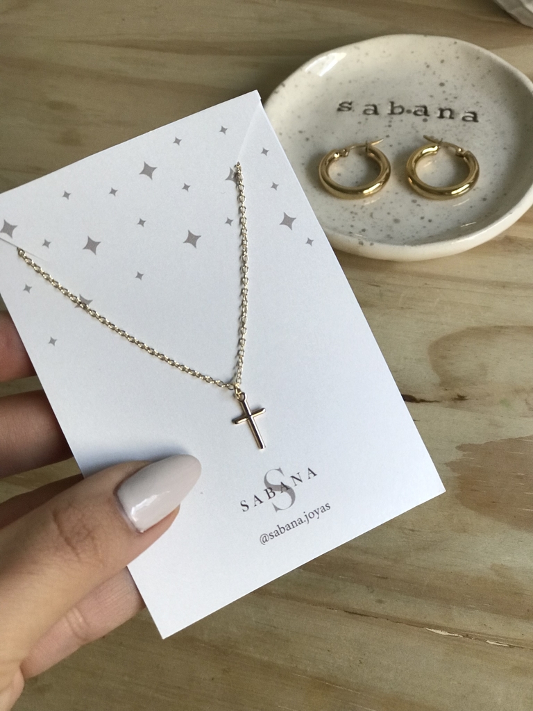 La cadena Cruz de Sabana Joyas es de Gold Filled baño de oro 18k, con un dije de cruz. Esta cadena mide 42cm, la cual te quedará en una medida comoda.