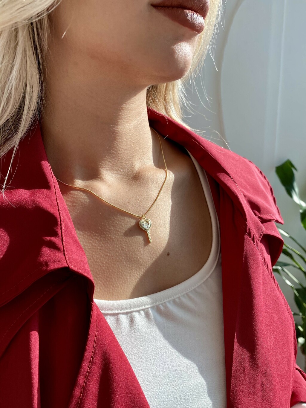La cadena Llave de Luz de Sabana Joyas es de Gold Filled baño de oro 18k, importado, con un dije en forma de llave con brillantes de Zircón, mide 42cm una medida comoda para cualquier tipo de cuello.