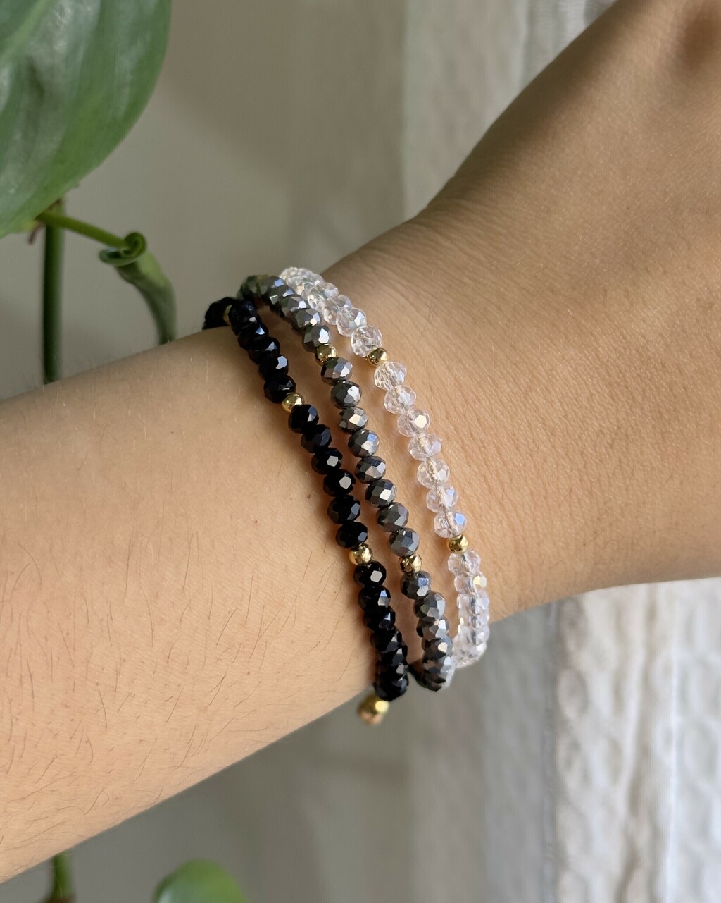 La pulsera Edén de Sabana Joyas es de Gold Filled baño de oro 18k, es ajustable, con cristales checos en colores negra, verde esmeralda, plata y bronce, con balines separadores para darle un toque de brillo. Esta pulsera es muy original, ya que son tres en una y no vas a necesitar colocarte otra pulsera para completar tu outfit.